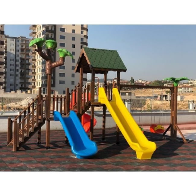 2 Kule Ahşap Seri Çocuk Oyun Parkı
